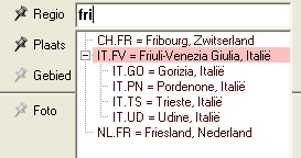 | Sommige velden geven extra hulp: Zodra je een paar letters van de provincie intikt floept er een lijstje suggesties uit. Na het intikken van 'fri' krijg je de keuze uit 'Fribourg', 'Friuli-Venezia Giulia' of toch maar gewoon 'Friesland'. Bovendien zie je welke deel-provincies de regio Friuli heeft, en kun je je ook nooit vergissen in de spelling. |
