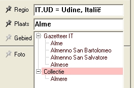 | Bij het plaatsnaam-veld toont Klasse de plaatsnamen uit het zojuist gekozen land die met de ingetikte letters beginnen, plus eerdere vindplaatsen uit de collectie met deze letters. Klasse kent voor alle 2000 provincies in totaal zo'n 100.000 plaatsnamen uit 40 Europese landen. Desgewenst kun je ook de coördinaten van zo'n plaats automatisch laten invullen. |