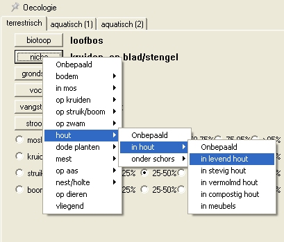 | Voor het veld 'gastheer' kun je een extra dier kiezen uit de catalogus. In het veld 'plant' kun je een plant kiezen uit een aparte (meegeleverde) plantencatalogus. |